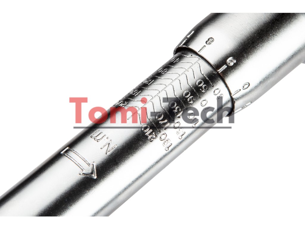 Momentový kľúč 1/2" 20-210 Nm, dĺžka kľúča 480 mm, račňový mechanizmus 45 zubov, poistný krúžok, kľúč by sa nemal skladovať s pružinou nastavenou na maximálne hodnoty, kalibračný certifikát, oceľ CrV, plastové puzdroDodatočné parametre