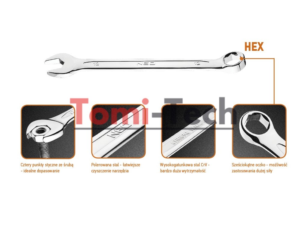 32 mm otvorený kľúč, šesťhranný otvor, profilovaná otvorená časť kľúča, oceľ CrV, zodpovedá norme DIN 3113, 25-ročná zárukaDodatočné parametre