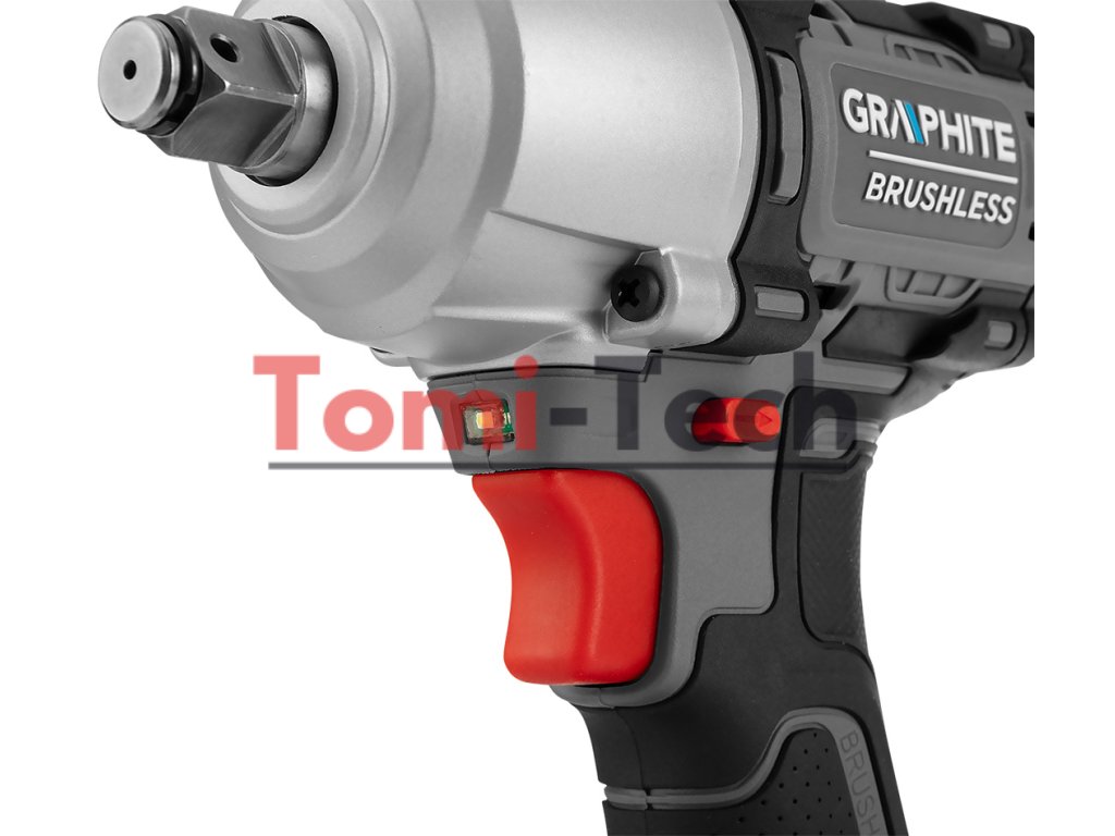 Bezuhlíkový rázový uťahovák 450 Nm. Skľučovadlo 1/2". Rýchlosť otáčania: Stupeň I: 0-1600. Stupeň II: 0-2100. Stupeň III: 0-2600 min-1. Frekvencia úderov: 2000/2600/3300. Max. krútiaci moment: 200/320/420 Nm, max. 450 Nm (uvoľnenie), bez batérie, výdrž batérie: 2Ah 31 min., 4Ah 62 min., 6Ah 93 min., 8Ah 130 min., hmotnosť 1,3 kg.Dodatočné parametre
