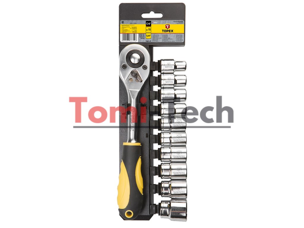 Sada nástrčných kľúčov 1/2", sada 1 1/2": račňová 190 mm, dvojkomponentná rukoväť, 24 zubov, prepínač smeru otáčania, 10 ks šesťhranných nástrčných kľúčov, veľkosti: 10, 12, 13, 14, 15, 16, 17, 19, 21, 24 mm, plastový držiakDodatočné parametre