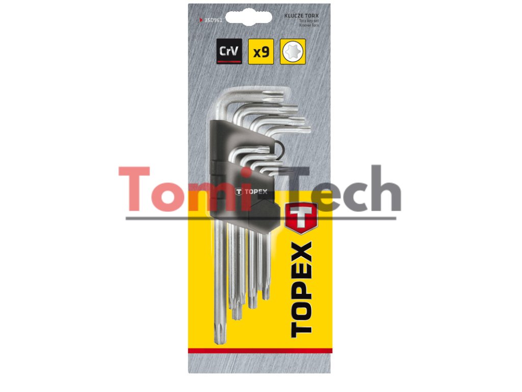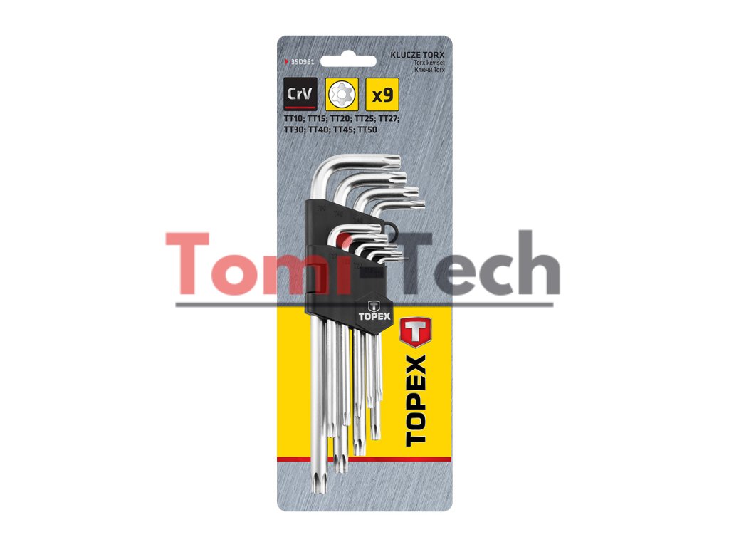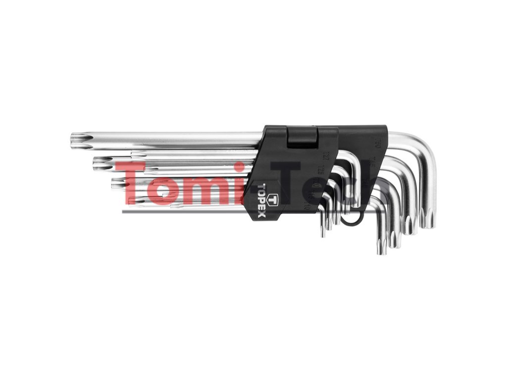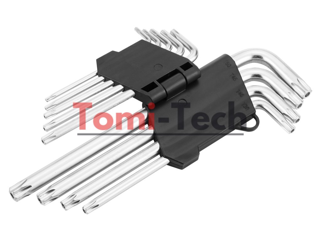 Kľúče Torx T10-T50, sada 9 kusov, dlhé, z CrV ocele, veľkosti: T10, T15, T20, T25, T27, T30, T40, T45, T50Dodatočné parametre