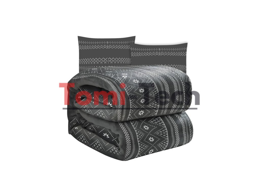 MÄKKÁ TEPLÁ DEKA S OBLIEČKAMI NA VANKÚŠE V ŠEDEJ FARBE SO ZIMNÝM MOTÍVOM
