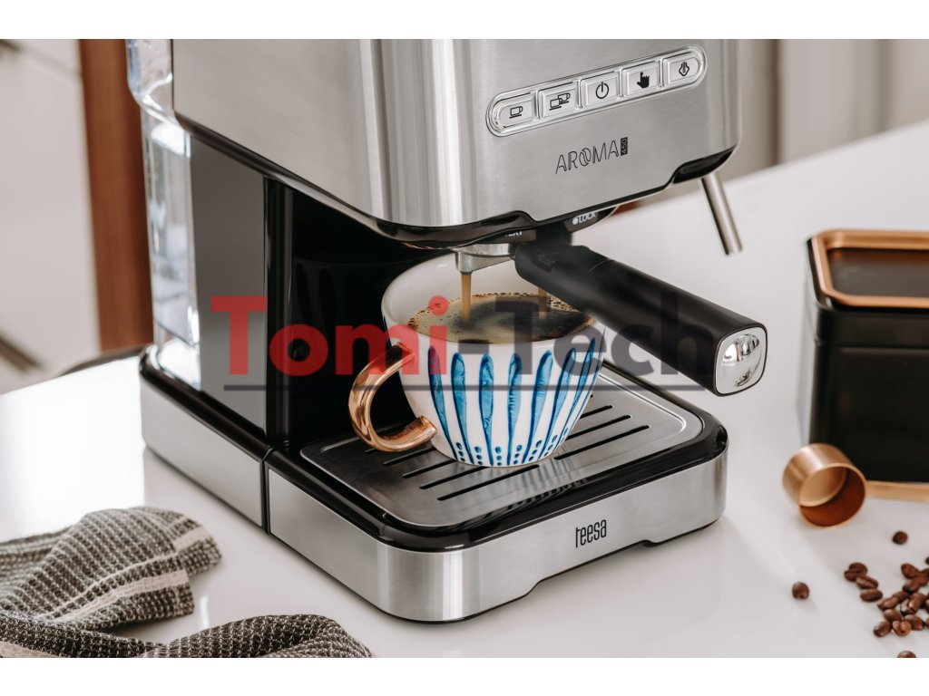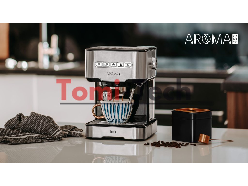 Zaujíma vás, ktorý espresso kávovar sa bude najlepšie hodiť do vašej kuchyne? Teesa Aroma 400 naplní váš domov arómou čerstvo uvarenej kávy. Zariadenie sa perfektne hodí do interiéru kuchyne a vďaka kompaktným rozmerom nezaberie veľa miesta na pracovnej doske.
