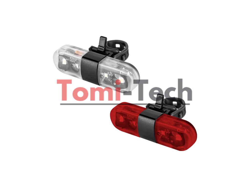 Zaistite si lepšiu viditeľnosť na ceste so sadou svetiel na bicykel Rebel. Sada sa skladá z predného a zadného svetla, ktoré poskytujú vynikajúce osvetlenie a zvyšujú vašu bezpečnosť pri jazde po zotmení. Predné svetlo vyžaruje studené biele svetlo so svietivosťou 60 lúmenov a zadné svetlo vyžaruje červené svetlo so svietivosťou 15 lúmenov, vďaka čomu budete viditeľní z diaľky.