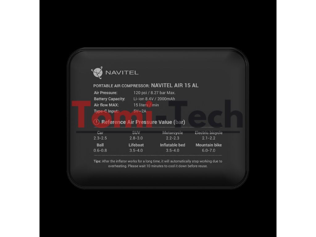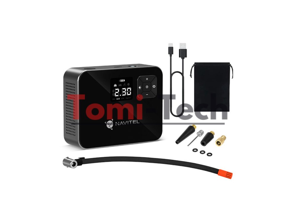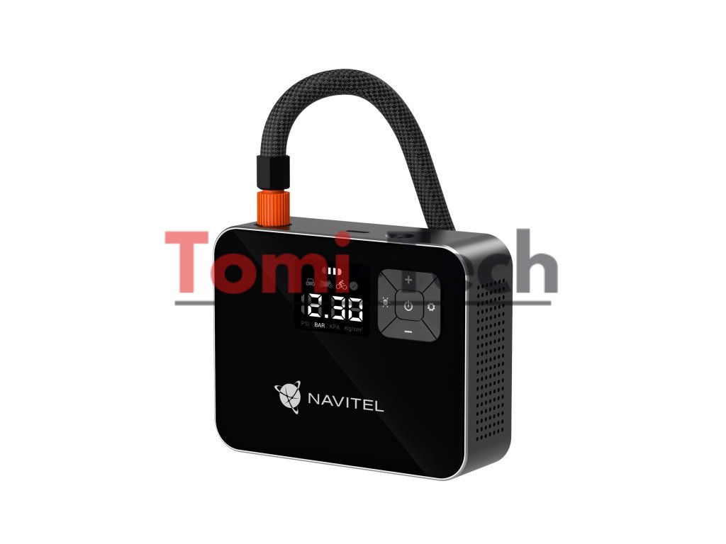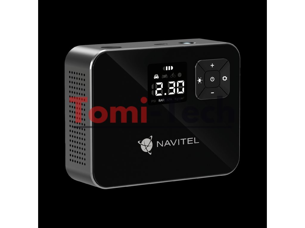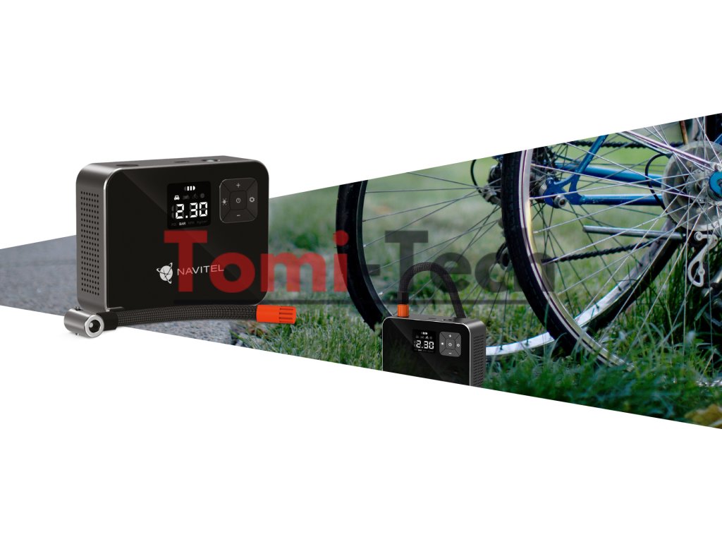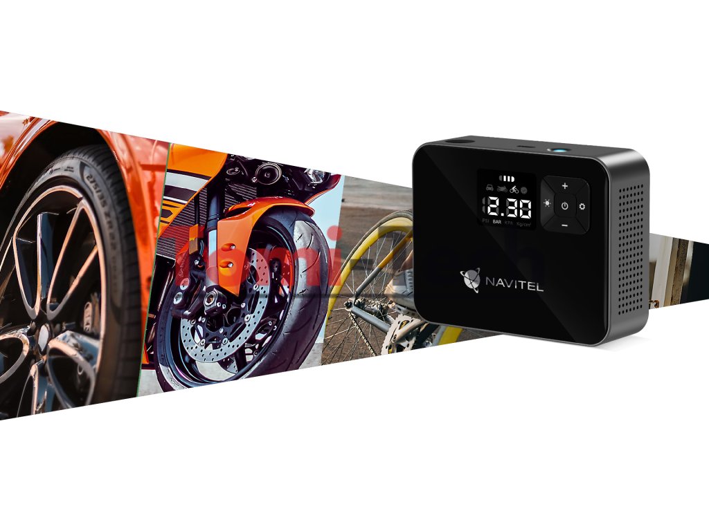 NAVITEL AIR 15 AL je vzduchový kompresor napájaný z batérie s automatickým regulátorom tlaku, digitálnym tlakomerom a LCD displejom. AIR 15 AL vám umožňuje jednoducho nafúknuť pneumatiky auta, bicykla, motocykla, lopty alebo hračky na plávanie. Vďaka vstavanej lítium-iónovej batérii s kapacitou 2000 mAh pracuje kompresor autonómne – bez nutnosti pripojenia k elektrickej zásuvke alebo palubnej sieti vozidla.