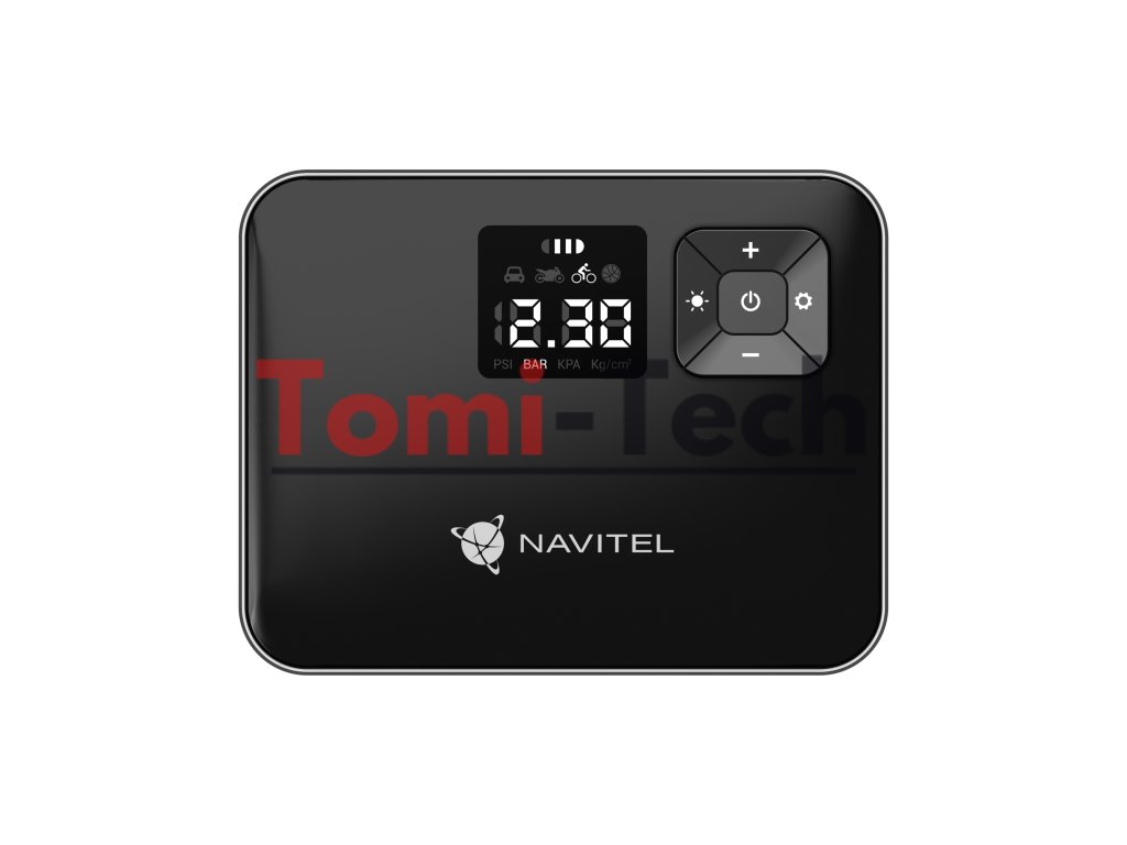 Vďaka jasnému digitálnemu displeju uvidíte potrebné ukazovatele aj v úplnej tme. Použite NAVITEL AIR 15 AL nielen na hustenie pneumatík, ale aj na kontrolu ich tlaku. Pripojte zariadenie a zapnite napájanie. Počiatočná hodnota na displeji zobrazí aktuálny tlak v pneumatikách.