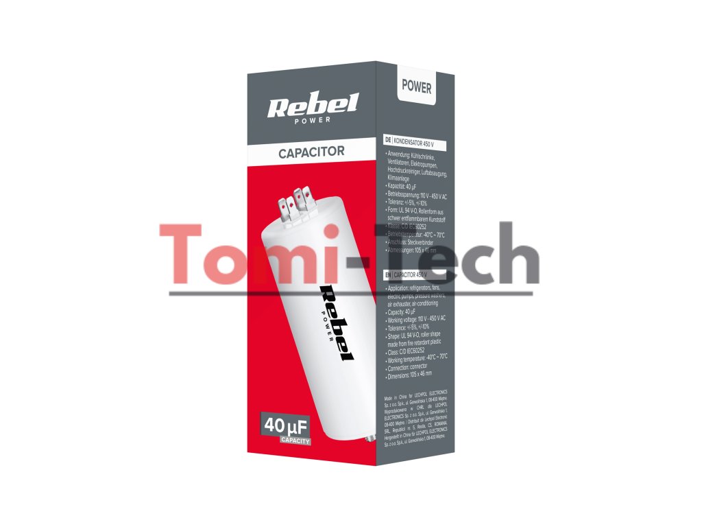 Kondenzátor 40uF 450V je spoľahlivé riešenie určené na podporu prevádzky jednofázových motorov v rôznych domácich a priemyselných spotrebičoch. Vďaka svojej pevnej konštrukcii a vysoko kvalitným materiálom je tento kondenzátor ideálny na použitie v chladničkách, ventilátoroch, elektrických čerpadlách, práčkach, ventilátoroch a klimatizačných systémoch.