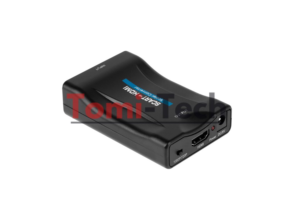 Materiál krytu: ABS Vstupný port: SCART Výstupný port: HDMI Vstup SCART: PAL, NTSC3.58, NTSC4.43, SECAM, PAL/K, PAL/N Výstupné rozlíšenie HDMI: 720p/60Hz, 1080p/60Hz Max. dĺžka kábla HDMI: 7 m Max. dĺžka kábla SCART: 8 m Rozmery: 88 x 58 x 26 mm Hmotnosť: 45 g Napájanie: AC 100 – 240 V; 50 – 60 Hz Obsah balenia: 5 V nabíjačka, používateľská príručkaDodatočné parametre