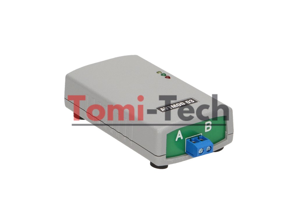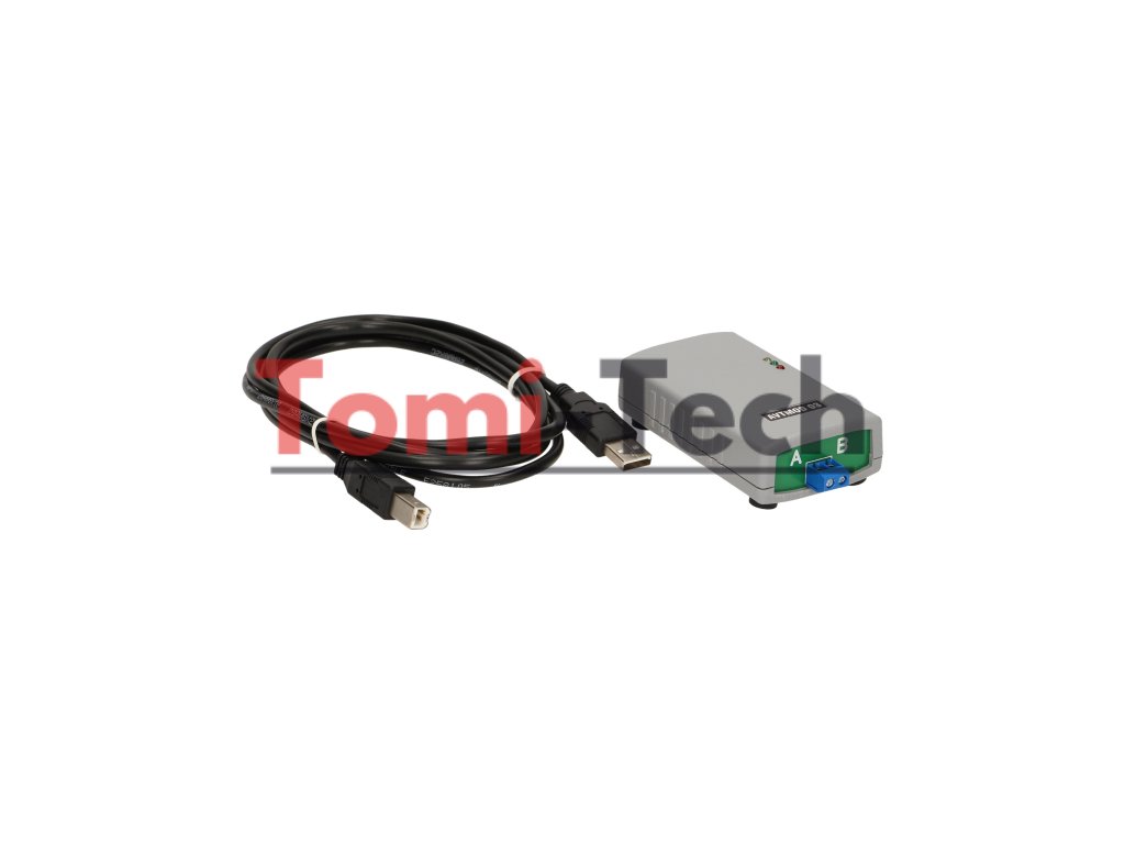 Prevodník umožňuje pripojenie komunikačnej zbernice RS485 k počítaču cez sériový port USB. Komunikácia medzi modulmi v systéme RS485 prebieha cez zdieľanú dvojvodičovú zbernicu a interakcia s počítačom prebieha cez rozhranie USB (kábel je súčasťou balenia). Prevádzkový režim je indikovaný LED diódami, maximálna dĺžka zbernice: 1200 m.Dodatočné parametre