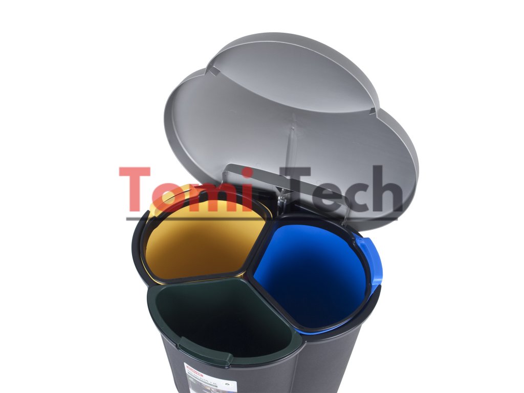 Kôš na triedenie odpadu "Trio" obsahuje tri samostatné, veľmi praktické priehradky označené rôznymi farbami, ktoré uľahčujú delenie odpadu: