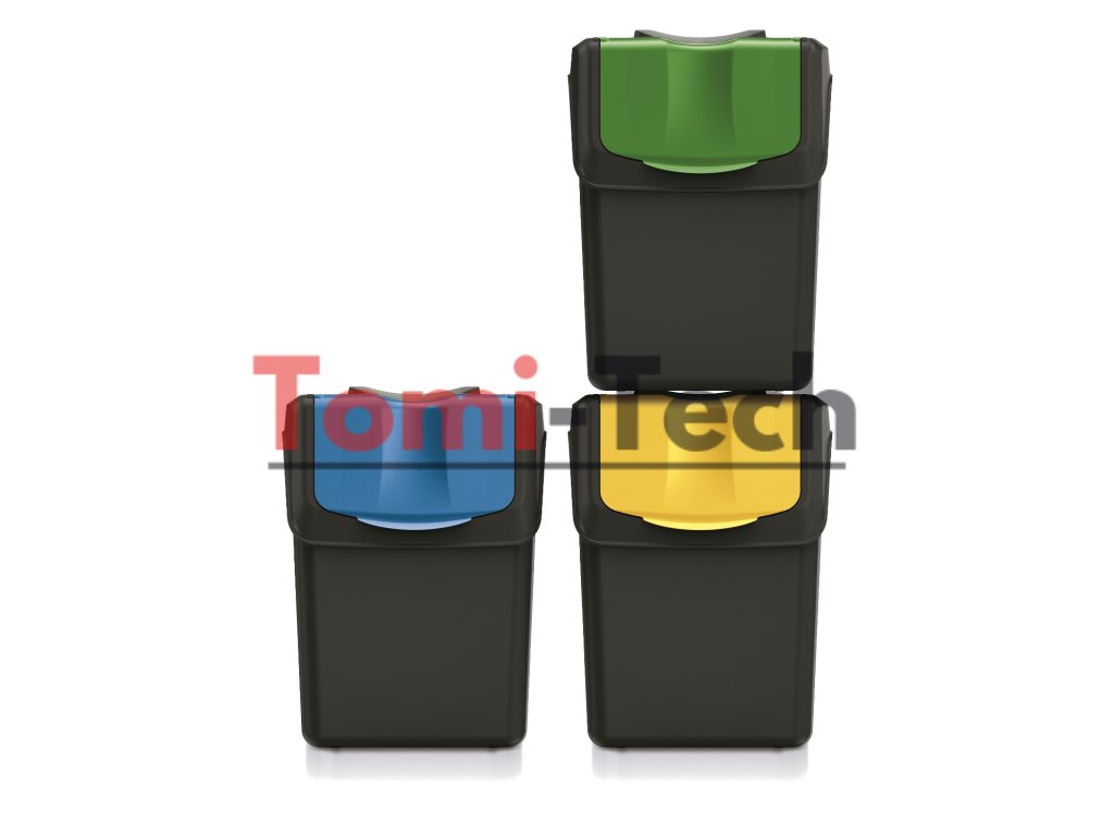 ISWB20S3 Sortibox je sada troch 20-litrových košov s klapkou v prednej časti veka. Špeciálna reliéfna podoba na viečkach a priehlbiny v telách umožňujú ich usporiadanie do radov alebo do stabilných stohov bez ohľadu na veľkosť. Vďaka tomu sú ideálne do miest s obmedzeným priestorom. Farebné nálepky, ktoré sa dajú nalepiť na viečka, označujú druhy triedeného odpadu.