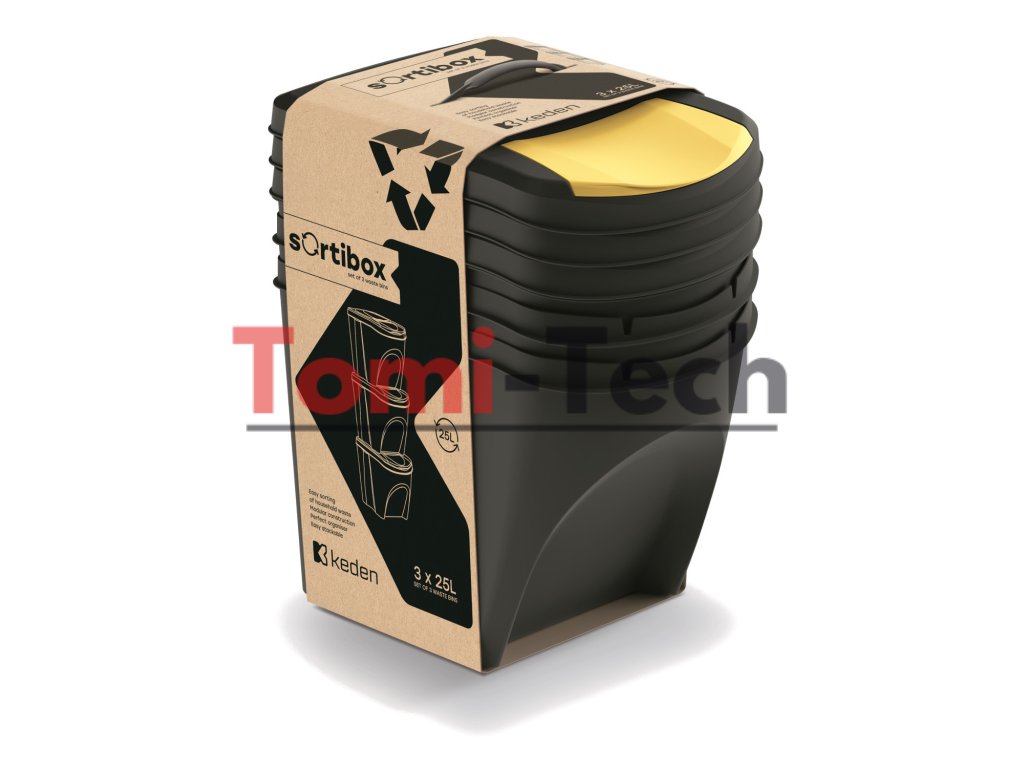Odpadkový kôš Keden SORTI BOX 3x25L - čierny, recyklovateľný