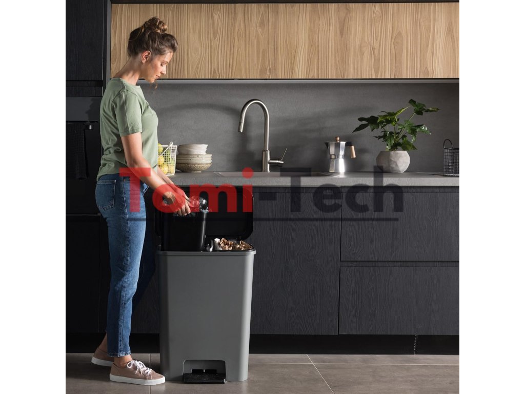 Pomaly zatvárateľné veko zaisťuje jemné a tiché zatváranie, zatiaľ čo veľký a pohodlný pedál umožňuje bezproblémové ovládanie bez použitia rúk. Kôš má tiež protišmykové gumené nožičky, ktoré zabraňujú šmýkaniu alebo posúvaniu, čím zaisťujú stabilitu počas používania. Čistenie koša je hračka a je vyrobený z 90 % recyklovaného plastu, vďaka čomu je ekologickou voľbou pre každú domácnosť.