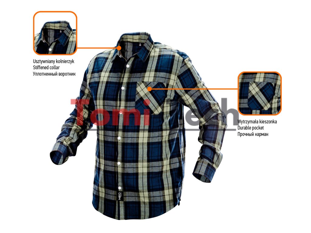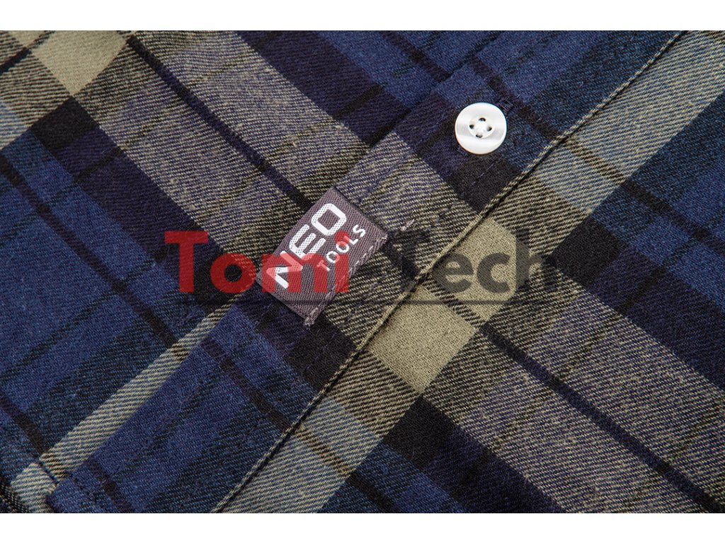 Flanelová košeľa, olivovo-tmavomodrá kockovaná tkanina z predfarbenej priadze, 100 % bavlna, 180 g/m2, veľkosť XXL, certifikácia CEDodatočné parametre