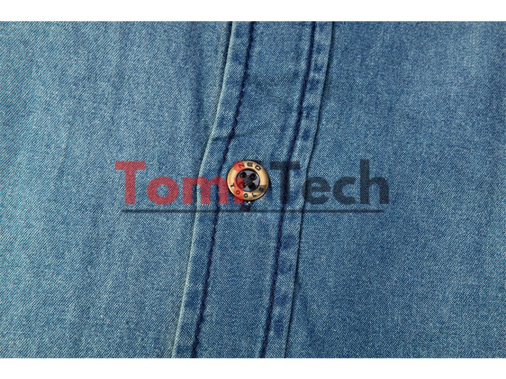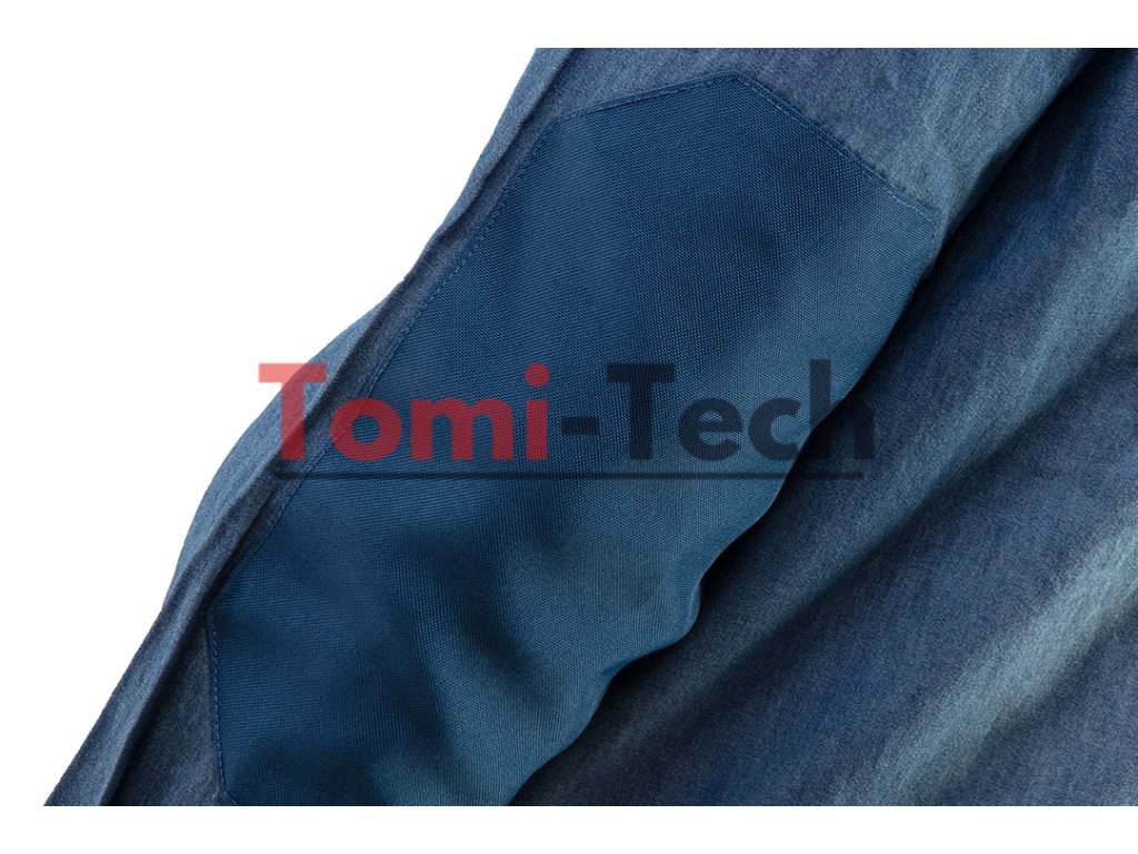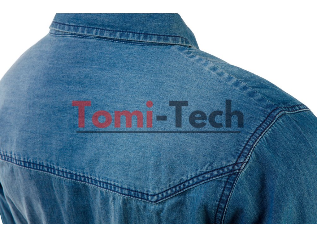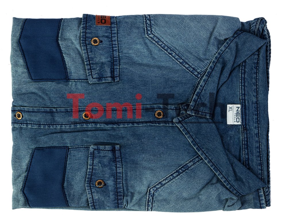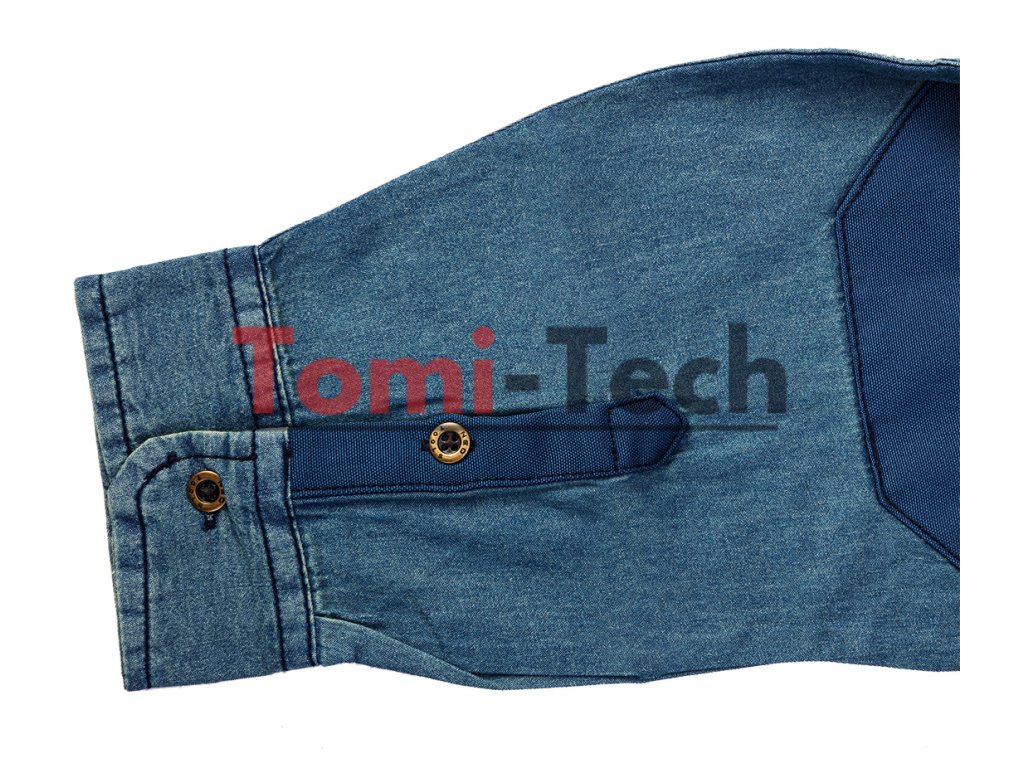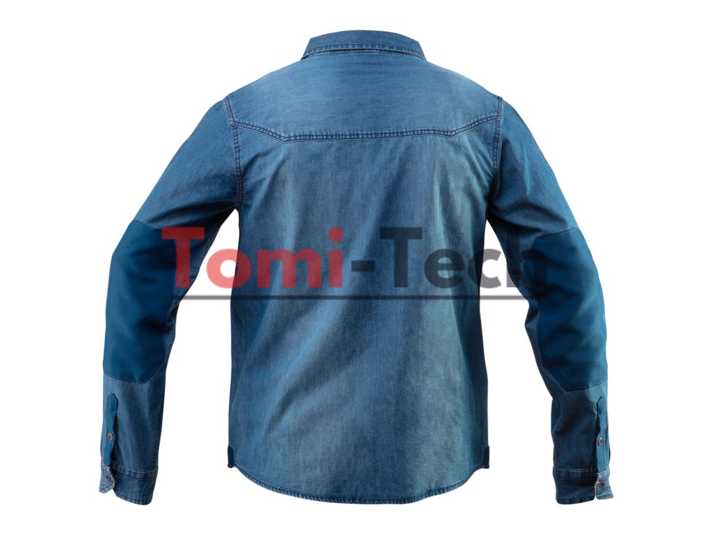 Pracovná košeľa DENIM, veľkosť L, 100 % bavlna, 140 g/m²; oxfordské výstuhy na lakťoch a vreckách, kovové gombíky, vnútorná menovka, jedinečný vlastný dizajn, certifikácia CE, v súlade s normou EN ISO 13688:2013Dodatočné parametre