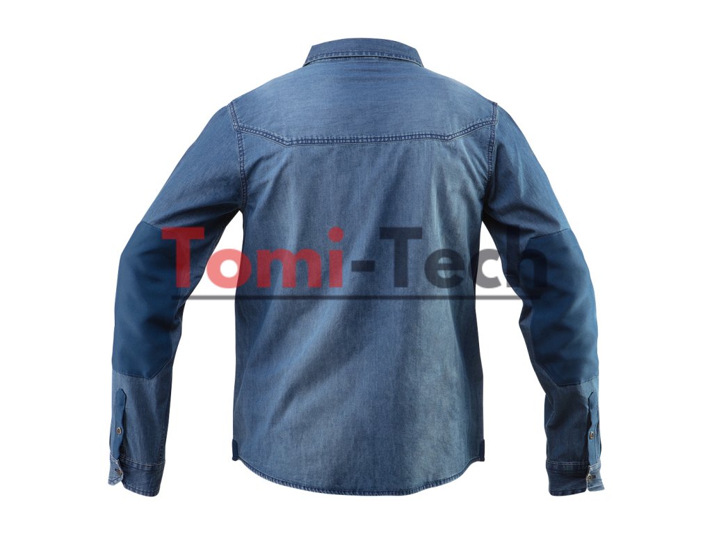Pracovná košeľa DENIM, veľkosť S, 100 % bavlna, 140 g/m²; oxfordské výstuhy na lakťoch a vreckách, kovové gombíky, vnútorná menovka, jedinečný vlastný dizajn, certifikácia CE, v súlade s normou EN ISO 13688:2013Dodatočné parametre