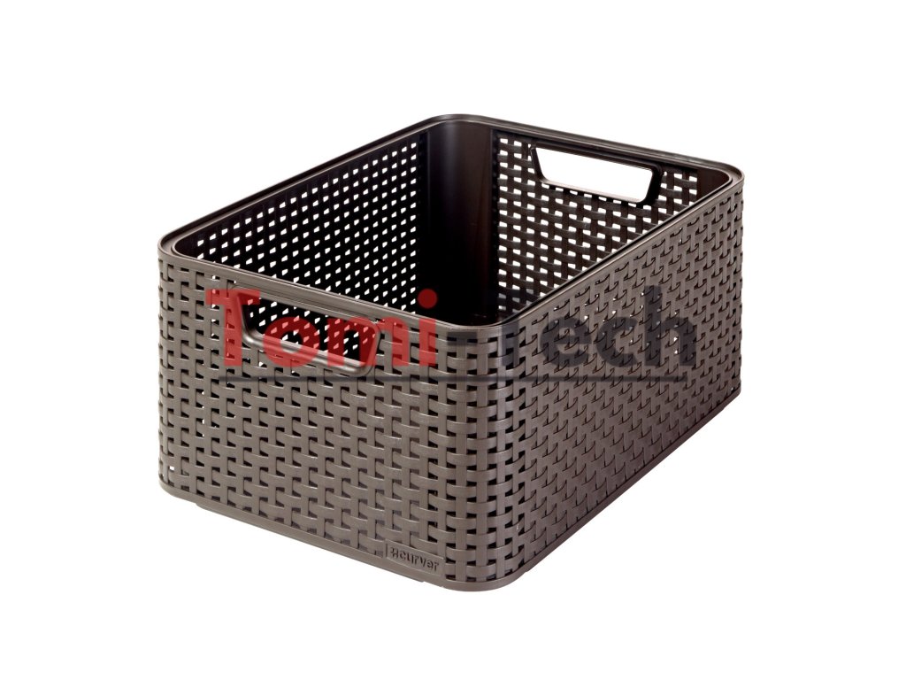 Košík Style M je všestranné úložné riešenie, ktoré možno použiť v mnohých miestnostiach, ako je obývačka, kuchyňa, spálňa alebo kúpeľňa. Môžete doň uložiť časopisy, dokumenty, textílie, kozmetiku, hračky a mnoho ďalšieho. Jeho textúra podobná ratanu mu dodáva prémiový vzhľad a dojem, vďaka čomu je perfektným doplnkom každého interiéru.