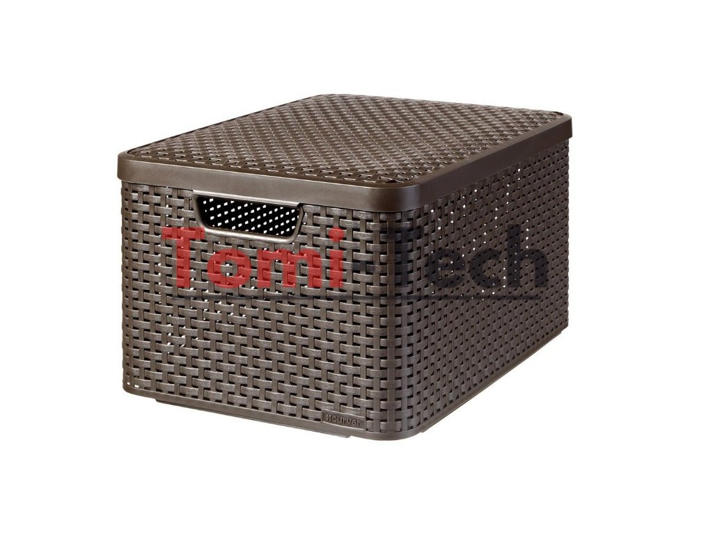 Sada obsahuje- Curver Rattan Style L tmavohnedý kôš s vekom