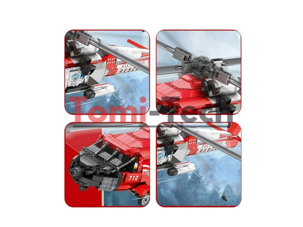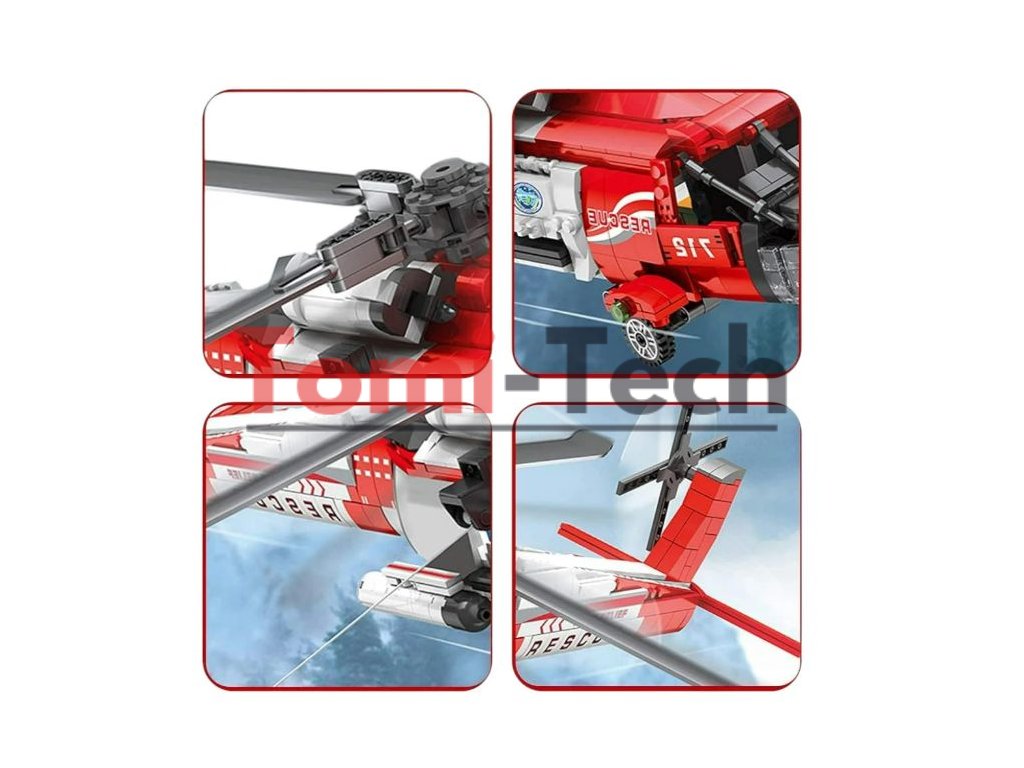 Špecifikácia: úroveň obtiažnosti montáže 5/7,stočené lano s hákom na spúšťanie z vrtuľníka, ručne sa otáčajúca chvostová vrtuľa, imitácia palubnej dosky v kabíne, imitácia záchrannej kabíny, verná reprodukcia skutočnej helikoptéry, možnosť ozdobenia vrtuľníka nálepkami zo sady, súčasťou balenia je obrázkový návod
