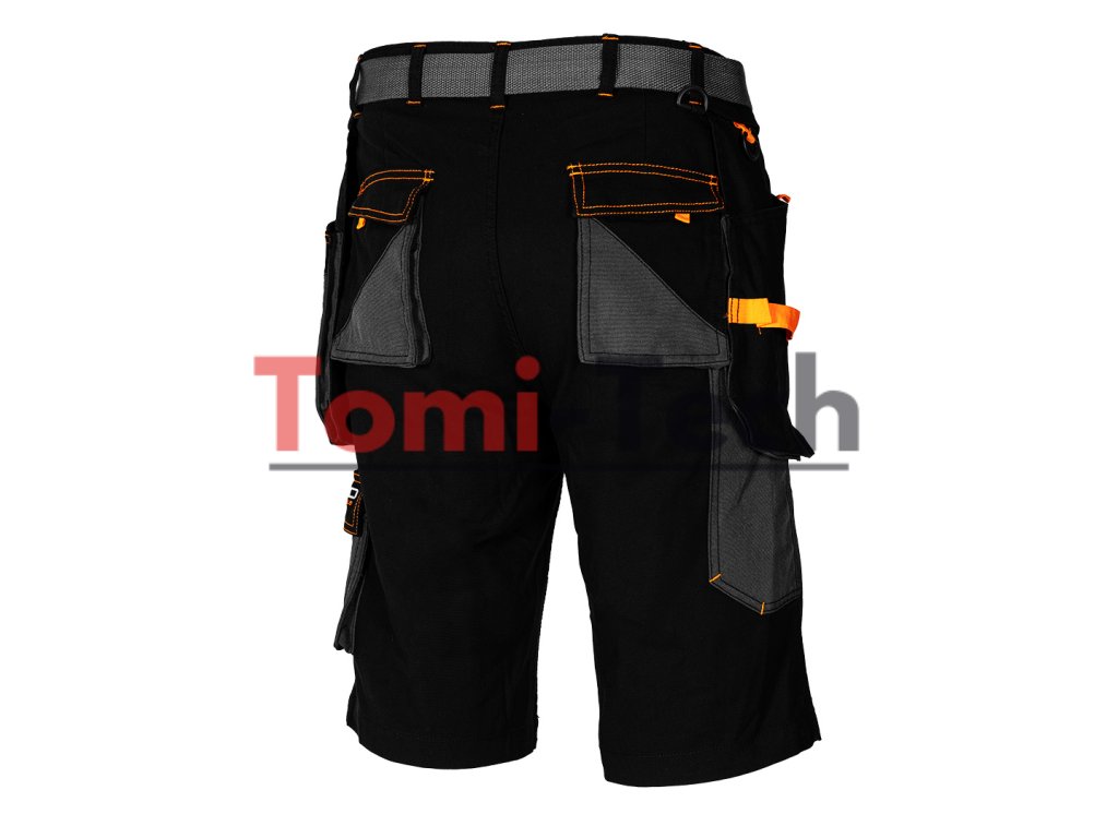 Pracovné šortky HD Slim, opasok, zloženie materiálu 60 % bavlna, 37 % polyester, 3 % elastan, gramáž 285 g/m2, pridanie elastanu zaisťuje lepšie padnutie a väčšie pohodlie pri nosení, unikátny strih Slim fit, priliehavý k telu, dodatočné výstuhy z oxfordskej látky v miestach najviac vystavených oderu, multifunkčné a priestranné vrecká, vnútorná menovka, bavlnený opasok s kovovou prackou, reliéfne logo NEO Tools, trojité šitie, odnímateľné vrecká na náradie, elastický pás, certifikát CE, veľkosť XLDodatočné parametre