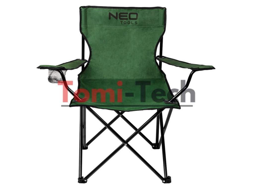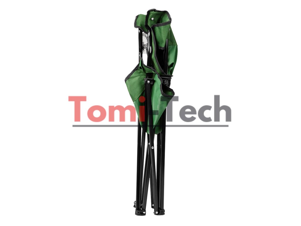 Skladacia kempingová stolička, materiál: vodeodolný oxford 100% polyester; rám z oceľových rúrok; maximálne zaťaženie: 120 kg; hmotnosť: 1,8 kg; rozmery po zložení: 83 x 17 x 17 cm; rozmery po rozložení: výška: 79 cm, šírka: 79 cm, hĺbka: 45 cm, sedadlo: 38x49 cm, operadlo: 40 x 45 cm, vrecko na nápoje s priemerom 7 cm v lakťovej opierke, rýchle skladanie a rozkladanie, súčasťou balenia je nylonový poťah s úchytom na ráme.Dodatočné parametre