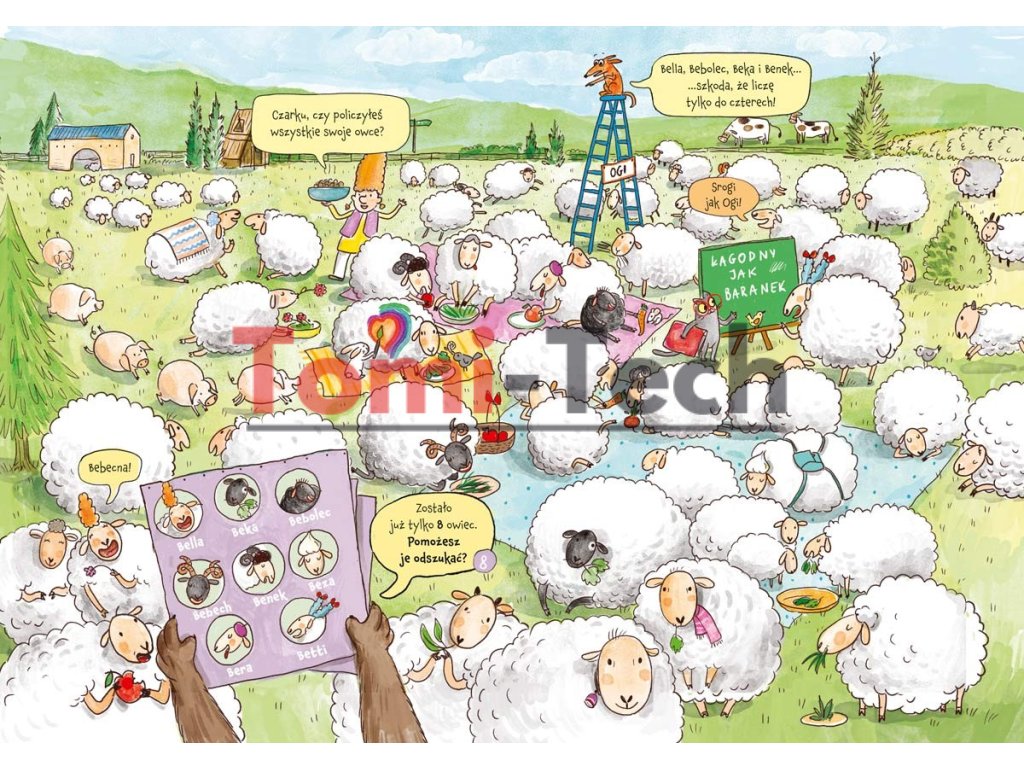 Bella, Bebolec, Beza a ostatné ovečky sa nikdy nenudia. Pasú sa na čistinke, oslavujú narodeniny, zbierajú jablká, navštevujú kaderníčku a jedna z nich sa dokonca vydá na cestu. Môžete ich sprevádzať na tomto úžasnom dobrodružstve a dokonca ich objať, ak budú mať chuť. Taktiež si otestujete svoje pozorovacie schopnosti hľadaním detailov skrytých v ilustráciách a riešením hádaniek.