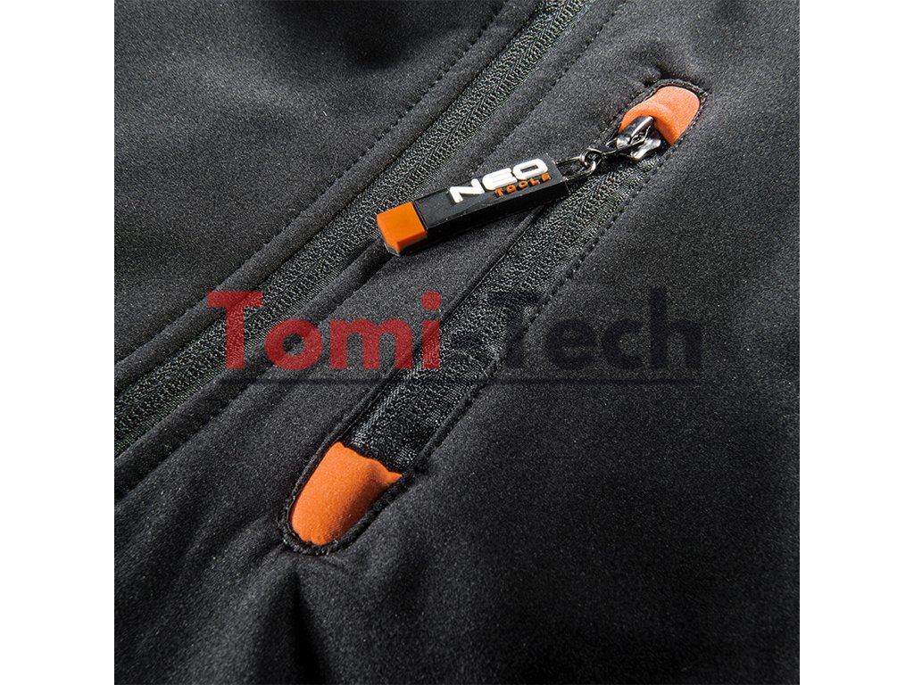 Pracovná bunda, veľkosť XXL/58, vyrobená z vysoko kvalitnej softshellovej tkaniny, vodeodolná 5000 mm, priedušná 3000 g/m2/24h, vetruodolná, manžeta na palec, flísová vnútorná strana, vrecko na telefón, sťahovacia šnúrka v spodnom šve, certifikácia CEDodatočné parametre
