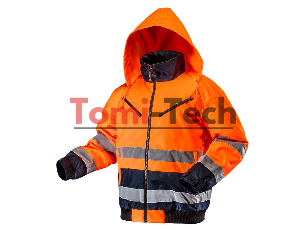 Pracovná reflexná zateplená bunda, oranžová, veľkosť M, vysoká viditeľnosť, trieda 2 podľa EN ISO 20471, tkanina 300D Oxford, 160 g/m² polyesterová výplň, množstvo multifunkčných vreciek na zips, veľké vnútorné vrecko, podlepené švy, vodeodolná a vetruodolná, kapucňa skrytá v golieri, flísový materiál vo vnútri goliera, elastický pás a manžety, certifikát CE, EN ISO 13688:2013Dodatočné parametre
