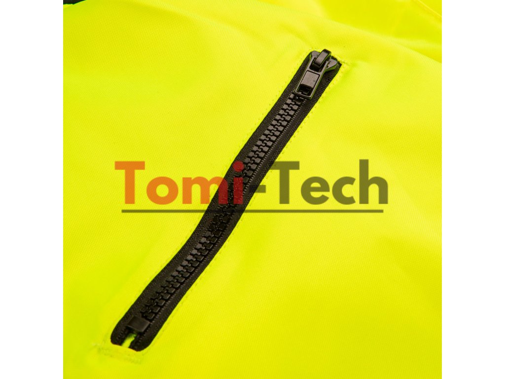 Pracovná reflexná zateplená bunda, žltá, veľkosť XL, vysoká viditeľnosť, trieda 2 podľa EN ISO 20471, tkanina 300D Oxford, 160 g/m² polyesterová výplň, početné multifunkčné vrecká na zips, veľké vnútorné vrecko, podlepené švy, vodeodolná a vetruodolná, kapucňa skrytá v golieri, flísový materiál vo vnútri goliera, elastický pás a manžety, certifikát CE, EN ISO 13688:2013Dodatočné parametre