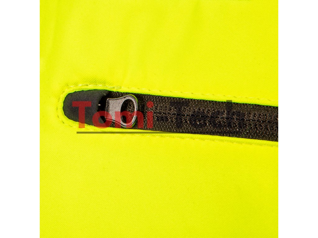 Pracovná reflexná softshellová bunda s kapucňou, žltá, veľkosť L, vysoká viditeľnosť, trieda 2 podľa EN ISO 20471, vodeodolnosť 8000 mm, priedušnosť 3000 g/m2/24h, vetruodolná, flísová podšívka, 4 vrecká na zips, vnútorné vrecko so zapínaním na suchý zips, manžety na suchý zips, nastaviteľný pás, odnímateľná kapucňa so sťahovacou šnúrkou, certifikácia CE, EN ISO 13688:2013Dodatočné parametre
