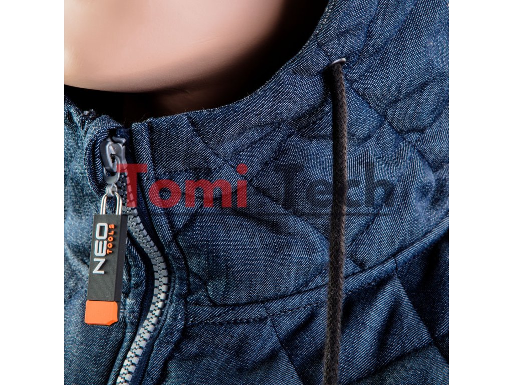 Prešívaná pracovná bunda, veľkosť S, 70 % bavlna a 30 % polyester, vrecká na zips, elastické manžety a pás, integrovaná kapucňa so sťahovacou šnúrkou, izolácia 100 % polyester, certifikácia CEDodatočné parametre
