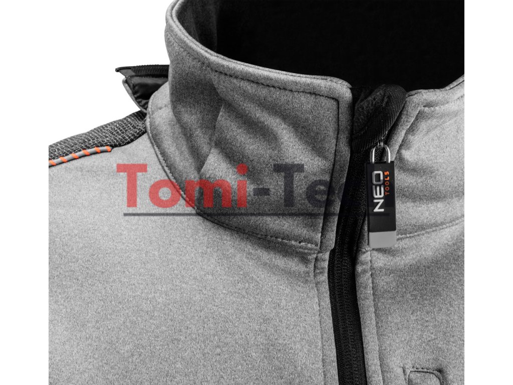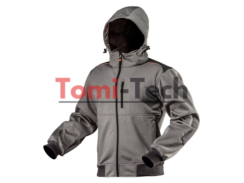 Softshellová pracovná bunda, odnímateľná kapucňa, veľkosť L, vodeodolnosť 8000 mm, priedušnosť 3000 g/m2/24h, vetruodolná, flísová vnútorná strana, vrecko na telefón, elastické manžety a pás, vystužené ramená a lakte, reflexné prvky, certifikácia CEDodatočné parametre