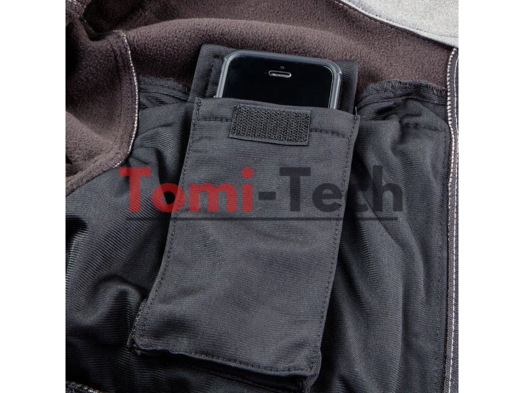 Softshellová pracovná bunda, odnímateľná kapucňa, veľkosť M, vodeodolnosť 8000 mm, priedušnosť 3000 g/m2/24h, vetruodolná, flísový podklad, vrecko na telefón, elastické manžety a pás, vystužené ramená a lakte, reflexné prvky, certifikácia CEDodatočné parametre