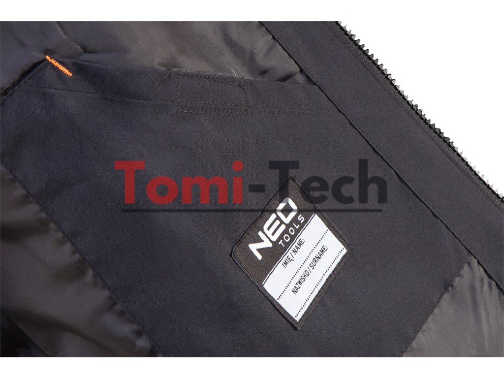 Teplá pracovná bunda, vrchný materiál 100% polyester, podšívka 100% polyester, výplň 100% polyester, integrovaná kapucňa, možnosť sťahovania kapucne, prešívaná, vnútorné vrecko, náprsné vrecko so zipsom, vrecká na zips, vnútorná menovka, certifikácia CE, veľkosť XLDodatočné parametre