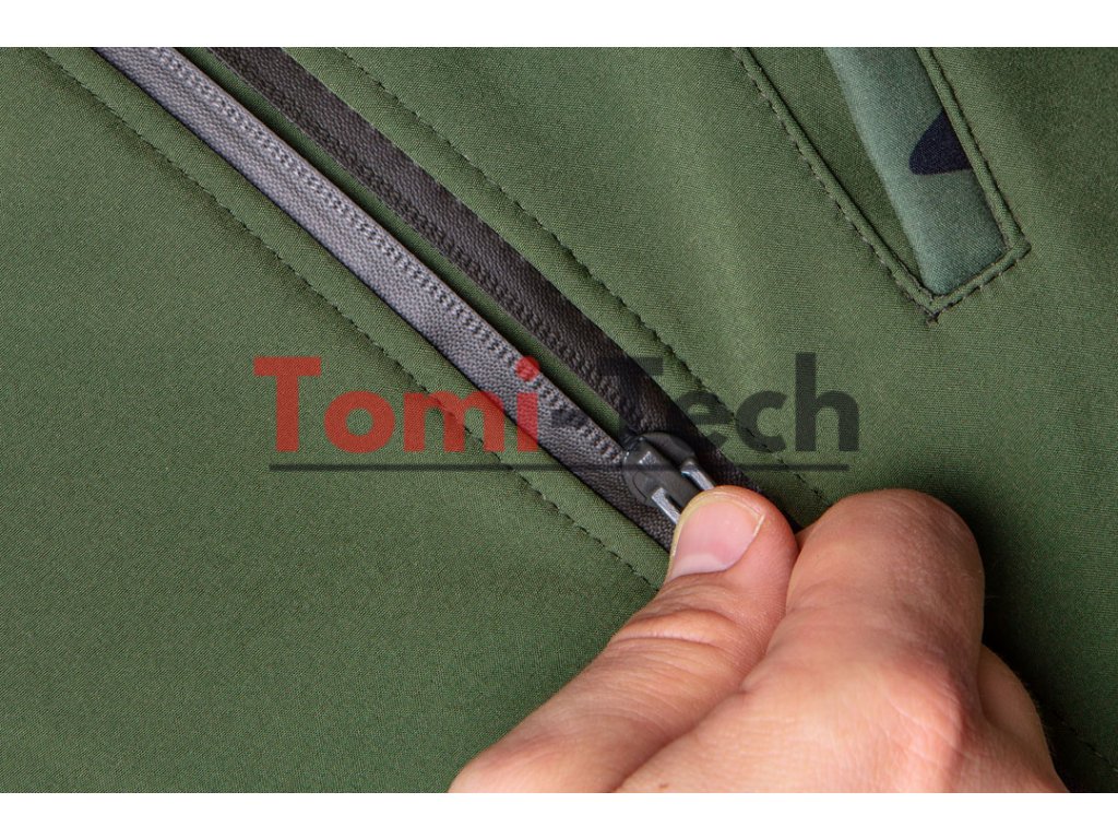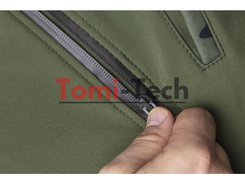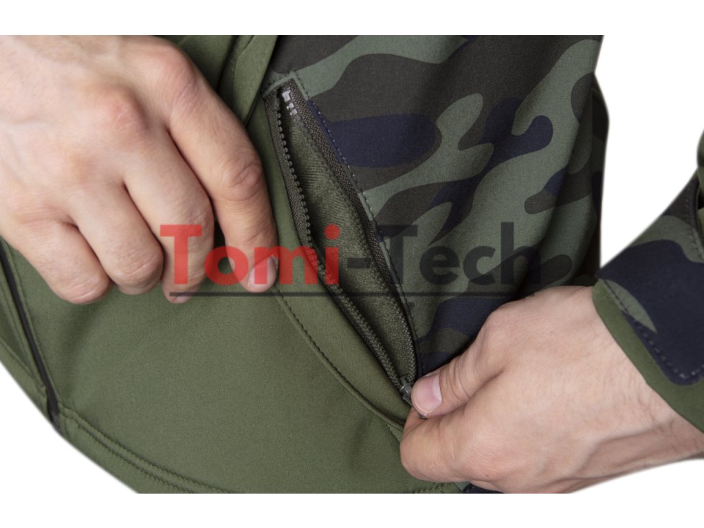 CAMO softshellová bunda, veľkosť L, vyrobená z vysoko kvalitnej softshellové tkaniny, s kapucňou, vodeodolnosť 5000 mm, priedušnosť 3000 g/m2/24h, vetruodolná, vodeodolné zipsy, flísová vnútorná strana, sťahovacia šnúrka v spodnom šve, 3 vrecká (vrátane 2 so zipsom), nastaviteľný obvod manžety, identifikačná vložka, certifikát CEDodatočné parametre