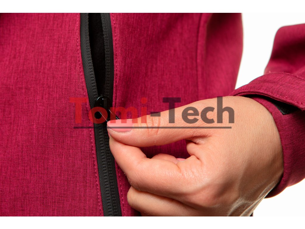Dámska softshellová bunda, veľkosť L, vyrobená z kvalitnej softshellové tkaniny, s kapucňou, vodeodolnosť 8000 mm, priedušnosť 1000 g/m2/24h, vetruodolná, vodeodolné zipsy, flísová vnútorná strana, sťahovanie šnúrkou v spodnom šve, 3 vrecká na zips, identifikačná vsadka, moderné farby, certifikácia CEDodatočné parametre