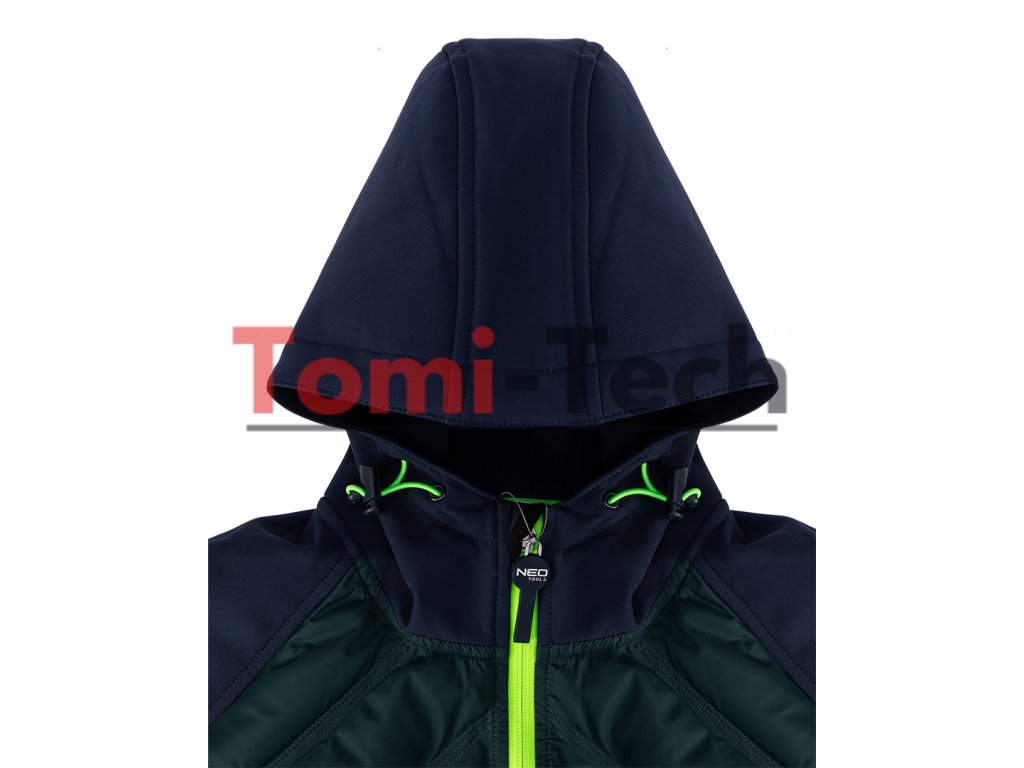 Softshellová bunda s PRÉMIOVOU izoláciou, hlavný materiál: 100% polyester, vnútorná vrstva: 100% polyesterový fleece, membrána: vodeodolnosť 5000, priedušnosť 3000, unikátna kombinácia softshellu a prešívanej izolácie, kapucňa s nastaviteľným obvodom, vysoký stojačik, nastaviteľný pás, obvod rukáva nastaviteľný klopou na suchý zips, profilované lakte, vodeodolná, neónový zips YKK, priestranné vrecká na zips, vnútorná menovka, reflexné potlače, reflexné logo, unikátny vlastný dizajn, CE, veľkosť XLDodatočné parametre