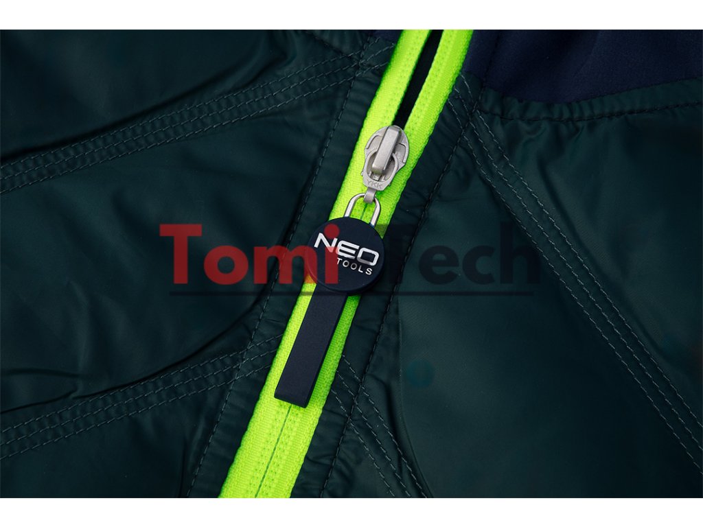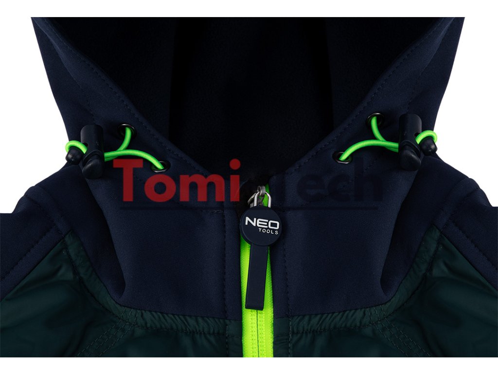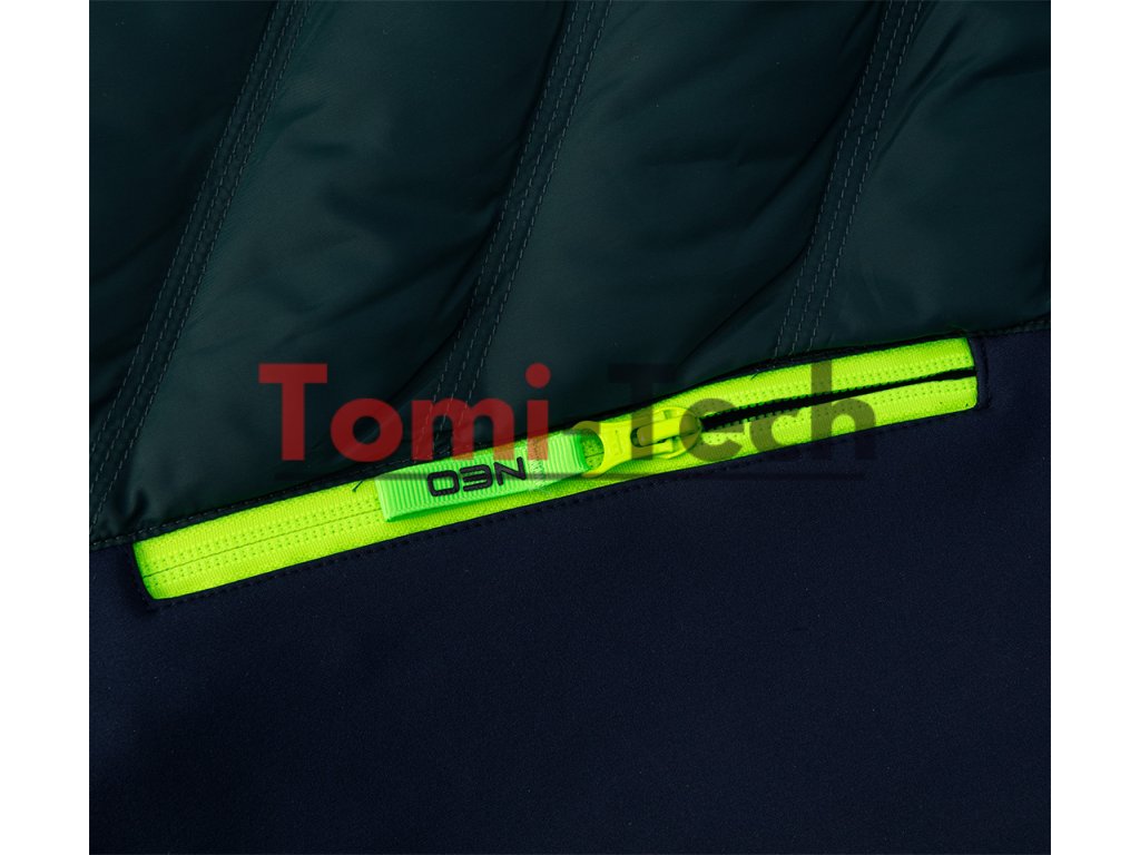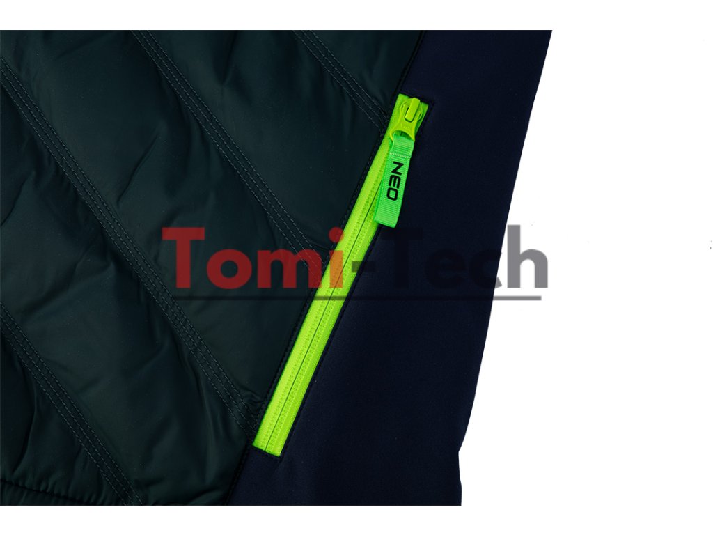 Softshellová bunda s PRÉMIOVOU izoláciou, hlavný materiál: 100% polyester, vnútorná vrstva: 100% polyesterový fleece, membrána: vodeodolnosť 5000, priedušnosť 3000, unikátna kombinácia softshellu a prešívanej izolácie, kapucňa s nastaviteľným obvodom, vysoký stojačik, nastaviteľný pás, obvod rukáva nastaviteľný légou na suchý zips, profilované lakte, vodeodolnosť, neónový zips YKK, priestranné vrecká na zips, vnútorná menovka, reflexné potlače, reflexné logo, unikátny vlastný dizajn, CE, veľkosť XXXLDodatočné parametre