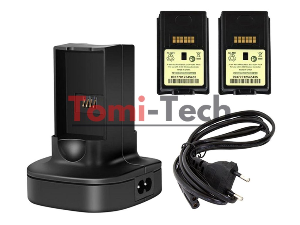 Dokovacia stanica - nabíjačka pre 2 batérie ovládača Microsoft XBOX 360. Balenie obsahuje aj 2 náhradné batérie do podložky! Nevyhnutná sada, ktorá vám ušetrí čas pri dodatočnom nabíjaní batérií! Už nebudete musieť prerušovať hru a čakať na nabitie článkov!