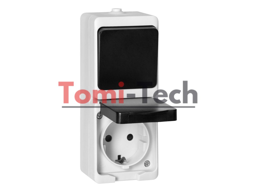 Jednopólový vypínač + 2P+Z zásuvka Schuko AQUATIC MINI IP 54 bielo-čiernaDodatočné parametre