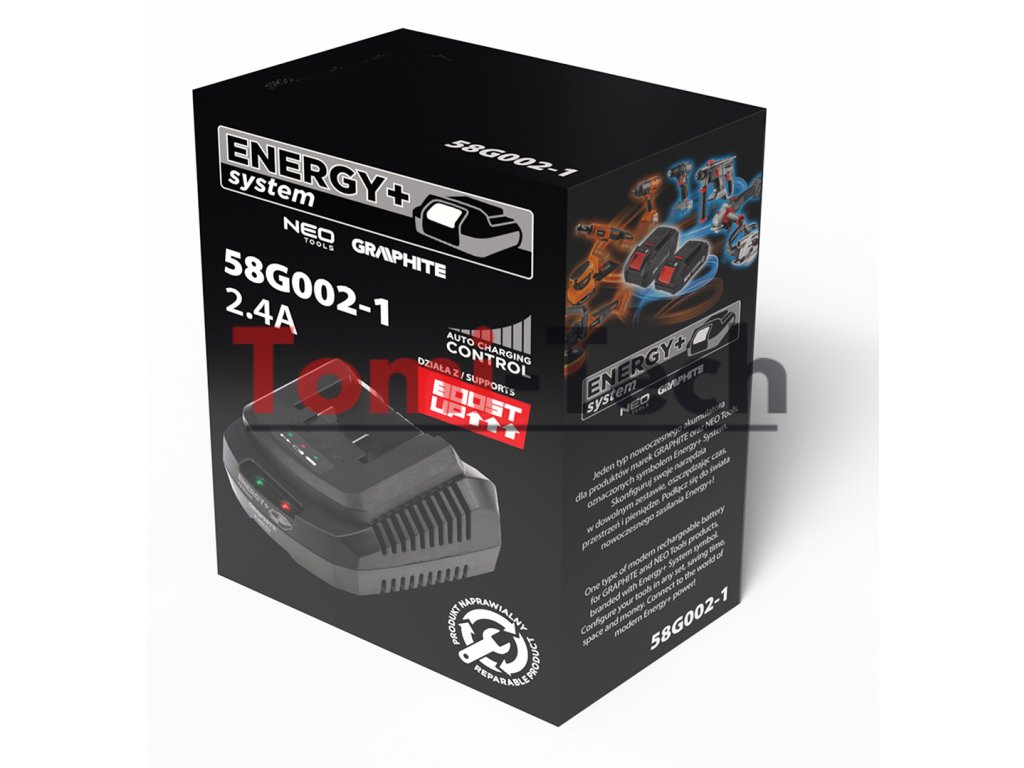 Nabíjačka batérií Energy+, 2,4 A, 65 W, teplotný rozsah: 4 – 40 stupňov Celzia, čas nabíjania batérie: 2 Ah 50 min, 4 Ah 100 min, 6 Ah 150 min, 8 Ah 200 min, hmotnosť: 0,3 kgDodatočné parametre