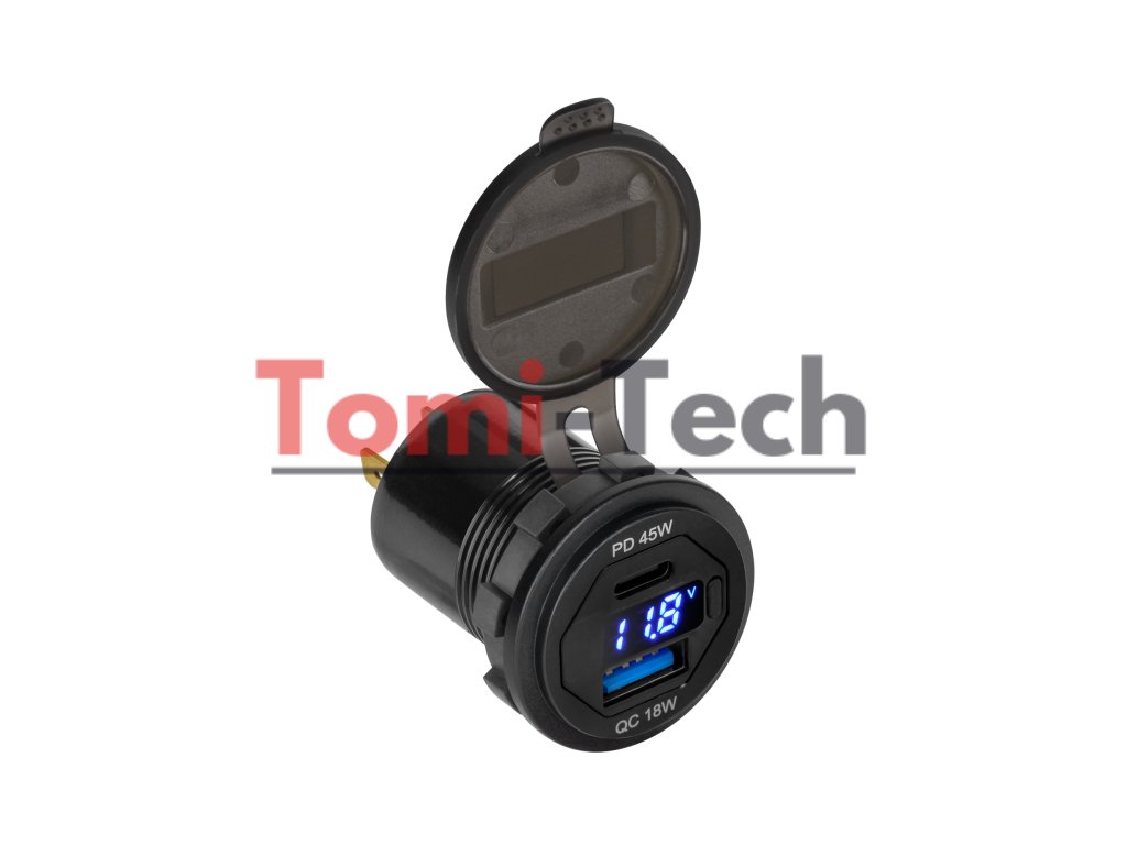 Nabíjačka do auta s USB+USB typu C s rýchlym nabíjaním, funkciou Power Delivery a voltmetrom 63W