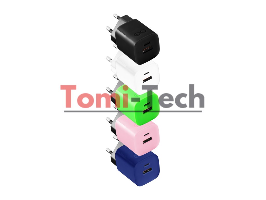Nabíjačka do steny eXc CUBE, 2xUSB (typ A+C), 33W, rýchle nabíjanie, mix farieb