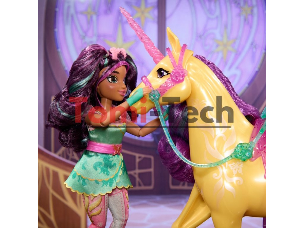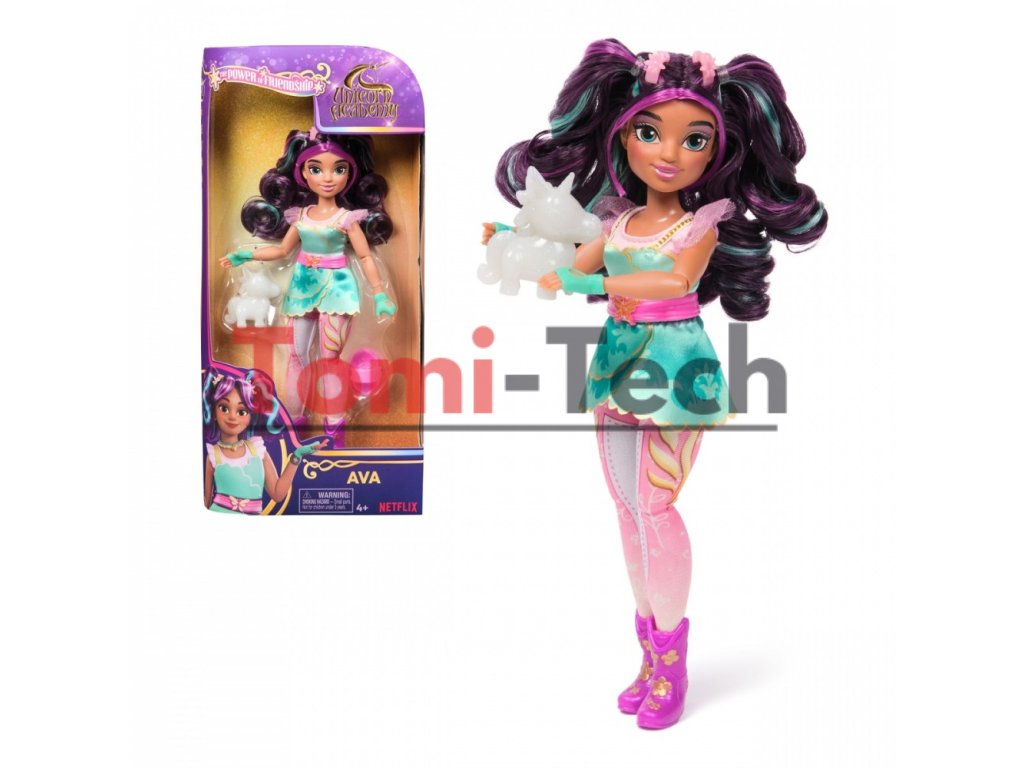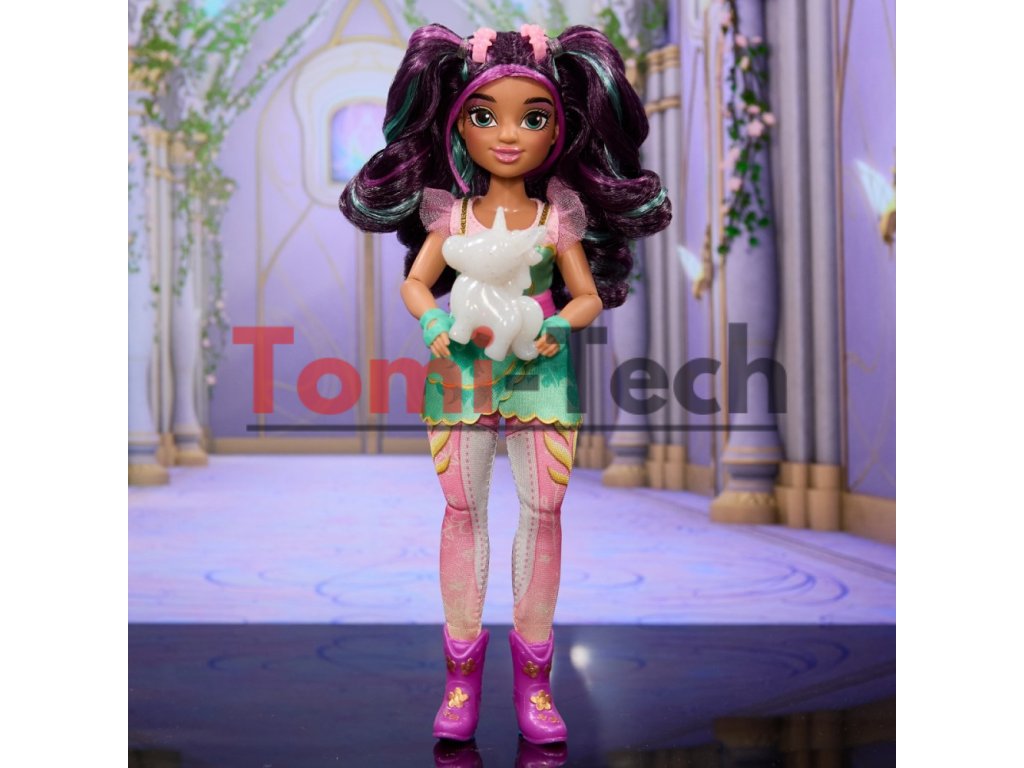 Znovu vytvorte kúzlo Unicorn Academy s módnymi bábikami zo série Sila priateľstva. Tieto 24 cm bábiky pre dievčatá, inšpirované animovaným seriálom NETFLIX a obľúbenou sériou kníh o priateľstve detí, oživujú postavy z obrazoviek. Avina žiarivá osobnosť je detailne prepracovaná od hlavy po päty a vyžaruje z jej odfarbených vlasov a jazdeckého oblečenia: úplne nové nohavice s nápismi Plant Magic, ružovo-tyrkysové šaty s lupeňmi, kvetinové topánky a sponky do vlasov, rukavice a doplnky pre bábiky s opaskom v tvare motýľa. Vďaka 9 bodom artikulácie sa Ava môže pritúliť k svojmu obľúbenému plyšovému bábikovi, pánovi Horseshoe, a potom sa vydať na dobrodružstvá s Leafym (jednorožec sa predáva samostatne). Priateľstvá a magické putá medzi študentmi Unicorn Academy a ich jednorožcami podnietia nekonečnú fantáziu. Ak chcete zažiť Unicorn Academy viac s vašimi obľúbenými postavami, preskúmajte ďalšie bábiky a ich jednorožce (hračky sa predávajú samostatne) a rozšírte si svoj svet. Hračky Unicorn Academy sú skvelými darčekmi na sviatky alebo špeciálne príležitosti pre deti, ktoré milujú hračkárske jednorožce a kone, bábiky a doplnky, domčeky pre bábiky, zberateľské predmety, plyšové zvieratká a ďalšie. Vytvorte si očarujúce dobrodružstvá s Avou z bábiky Unicorn Academy zo série Sila priateľstva.