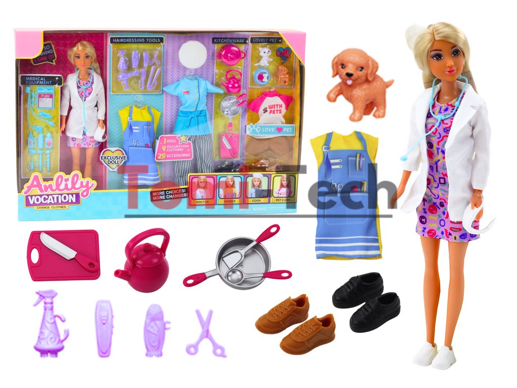 Anlily 4v1 Doktorská bábika Kaderníčka Kuchárka Zvieratá Oblečenie Doplnky