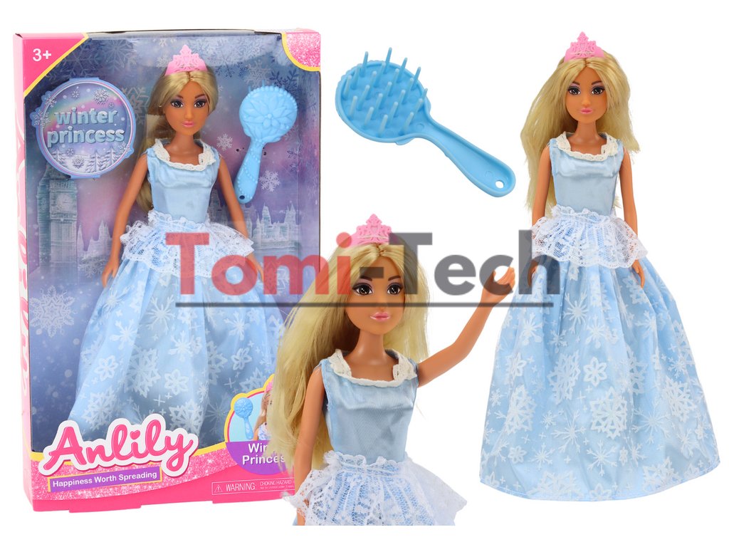 Modré šaty pre bábiku Anlily Ice Queen so štetcom Snehulienky