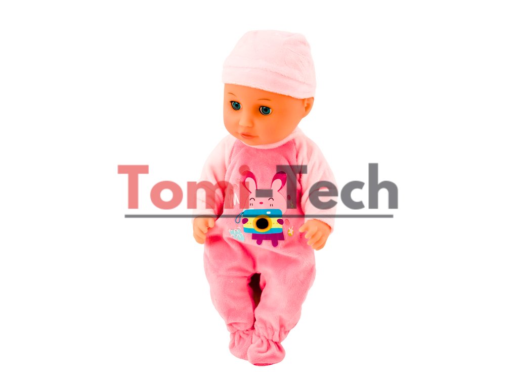 Na brušku bábiky je reproduktor, ktorý po stlačení tlačidla vydáva rôzne zvuky napodobňujúce emócie a správanie bábätka, čo rozvíja detskú fantáziu.
