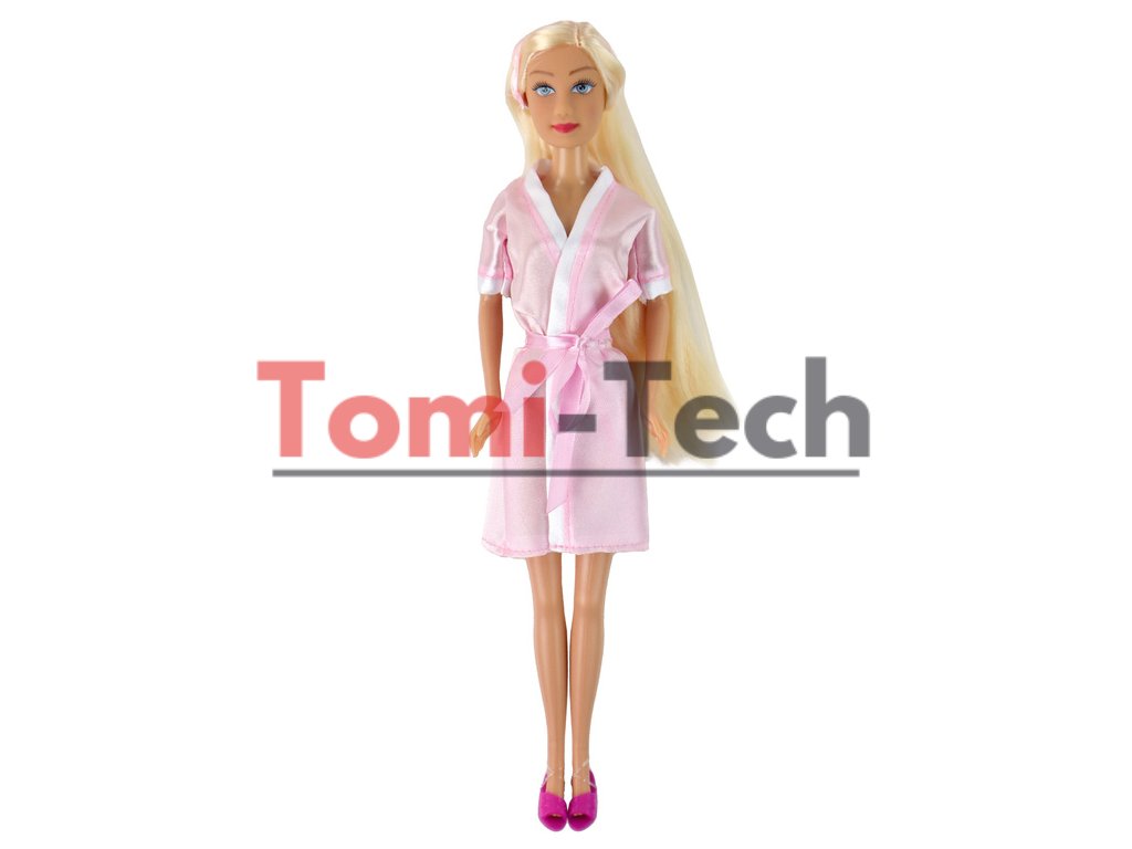 Naša bábika s dlhými blond vlasmi je perfektnou kamarátkou, ktorá vášmu dieťaťu umožní vytvárať úžasné príbehy a učiť sa prostredníctvom hry. Bábika sa teší z dlhých, upravených vlasov, ktoré umožňujú rôzne účesy. Jej očarujúci ružový župan a elegantné ružové vysoké podpätky dodávajú šarm a štýl.