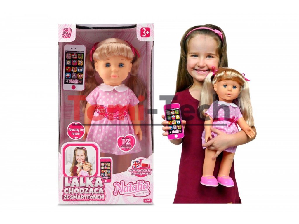 Chodiaca bábika Natalia so smartfónom 41 cm