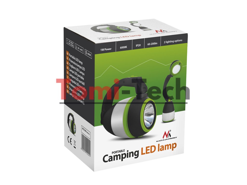 Maclean 3-v-1 LED lampa, kempingová, stolová, baterka, 1W, 60-200lm, studená biela 6000K, napájaná 3xAA 1,5V, MCE294